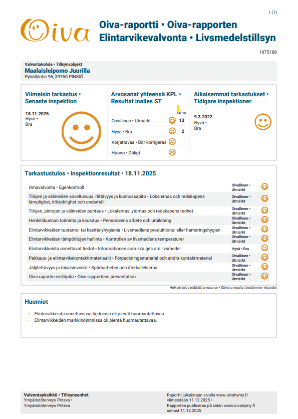 Oivassa elintarvikevalvontaviranomaiset arvioivat tarkastuksillaan yrityksien elintarviketurvallisuutta. Tarkastukset ovat valvontasuunnitelman mukaisia tarkastuksia. Toiminnan laajuudesta ja riskiperäisyydestä riippuen osa yrityksistä voidaan tarkastaa useita kertoja vuodessa mutta osa esim. vain kerran kolmessa vuodessa. Oiva-raportit julkaistaan sitä mukaa kun tarkastuksia tehdään.